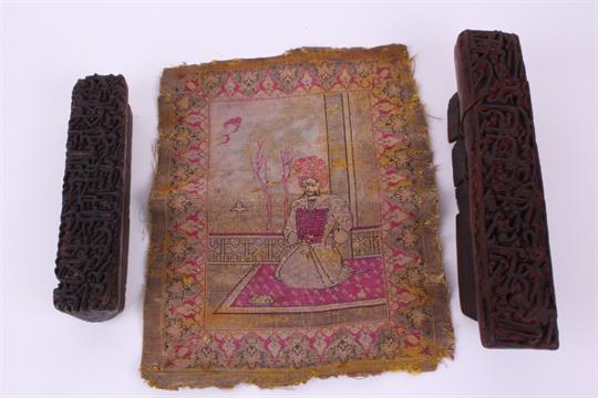 Two Antique Fabric Wallpaper Carved Wooden Printing Blocks Islamic Script Style With A Small S